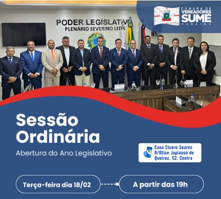 Os vereadores de Sumé irão participar nesta terça-feira (18), da sessão que inaugura os trabalhos na Casa Cícero Soares no ano de 2025.
