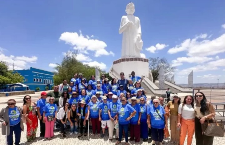 Durante o passeio, os participantes visitaram locais de grande importância religiosa e cultural, como a estátua do Padre Cícero, e puderam vivenciar momentos de devoção, alegria e convivência entre amigos.