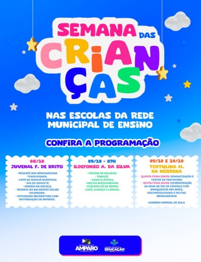 A Semana da Criança nas escolas municipais reforça o compromisso da Prefeitura de Amparo e da Secretaria de Educação com o bem-estar e o desenvolvimento das crianças. Por meio de atividades lúdicas, culturais e recreativas, o evento busca não apenas celebrar o Dia das Crianças, mas também construir memórias afetivas e fortalecer os vínculos entre escola, aluno e comunidade.