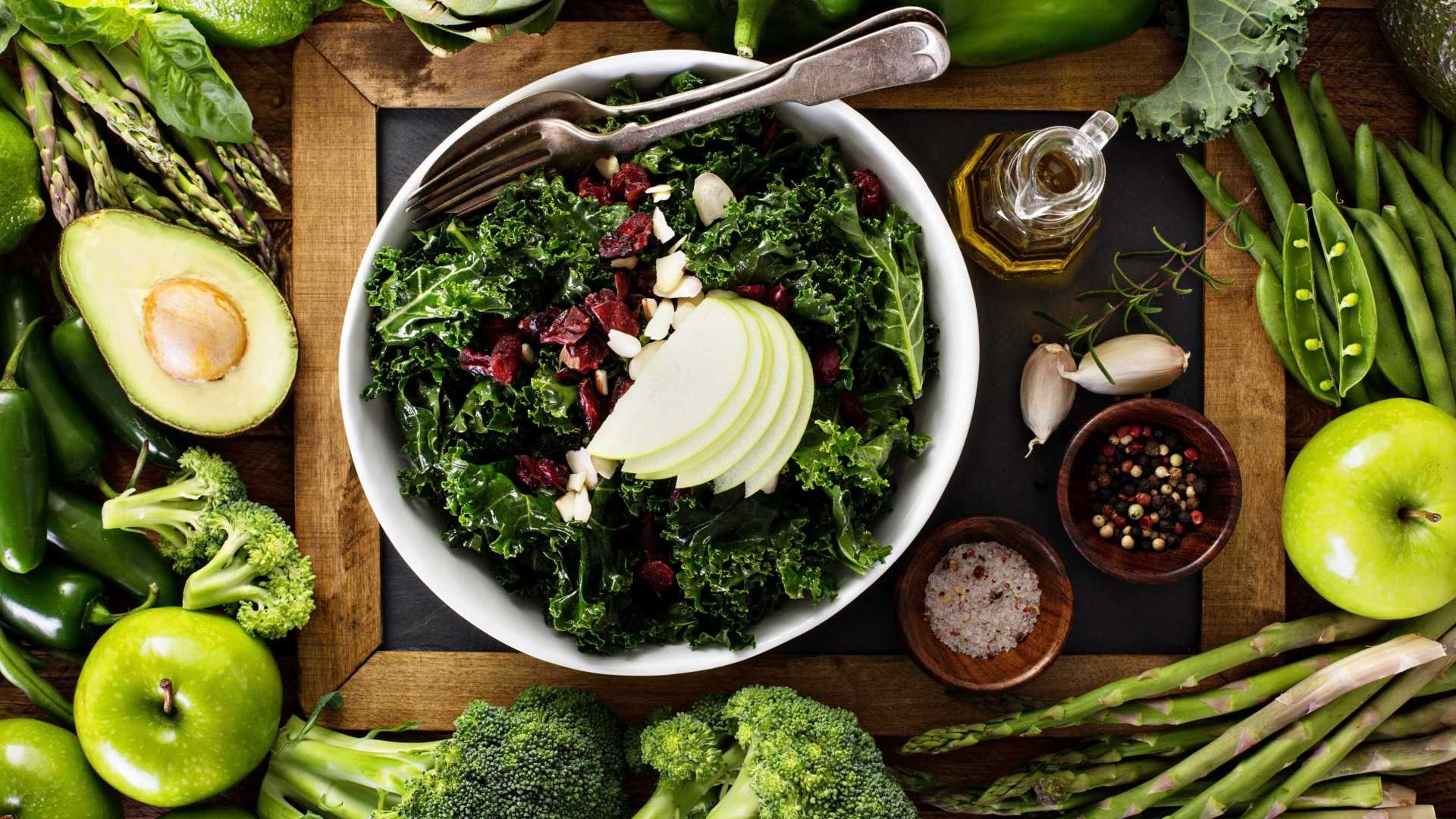 2 – Couve-de-folhas, ou kale. É um dos vegetais verdes mais em voga no momento e muito graças aos nutrientes que possui, dos quais se destacam os aminoácidos, as proteínas, as fibras, as vitaminas A, C, E e K e os minerais, como o cálcio, o ferro e o potássio. De poucas calorias e uma grande diversidade de confecção, esta couve é uma aliada no combate às cólicas e dores de estômago e pode ainda ajudar a travar as dores de cabeça.
